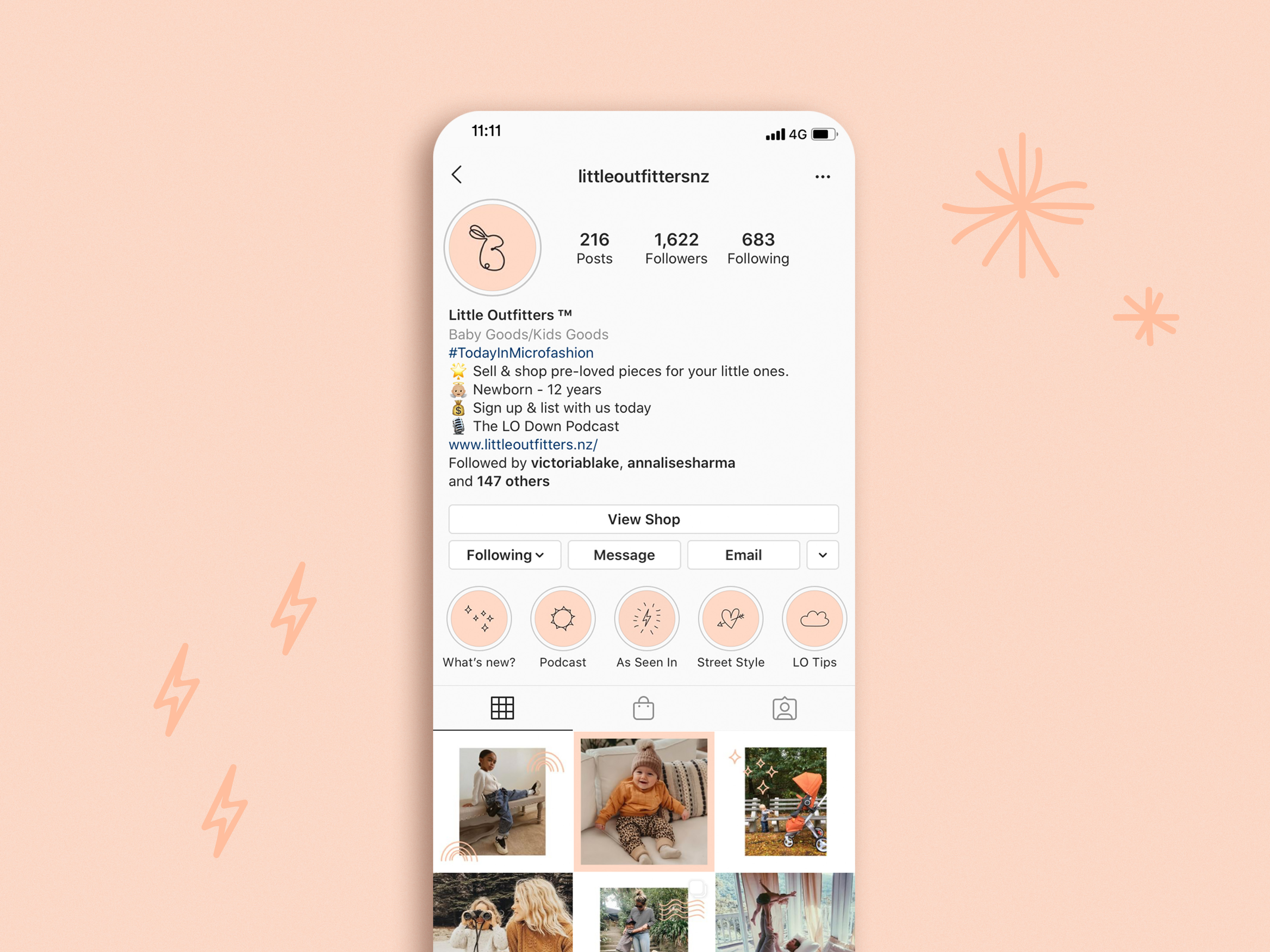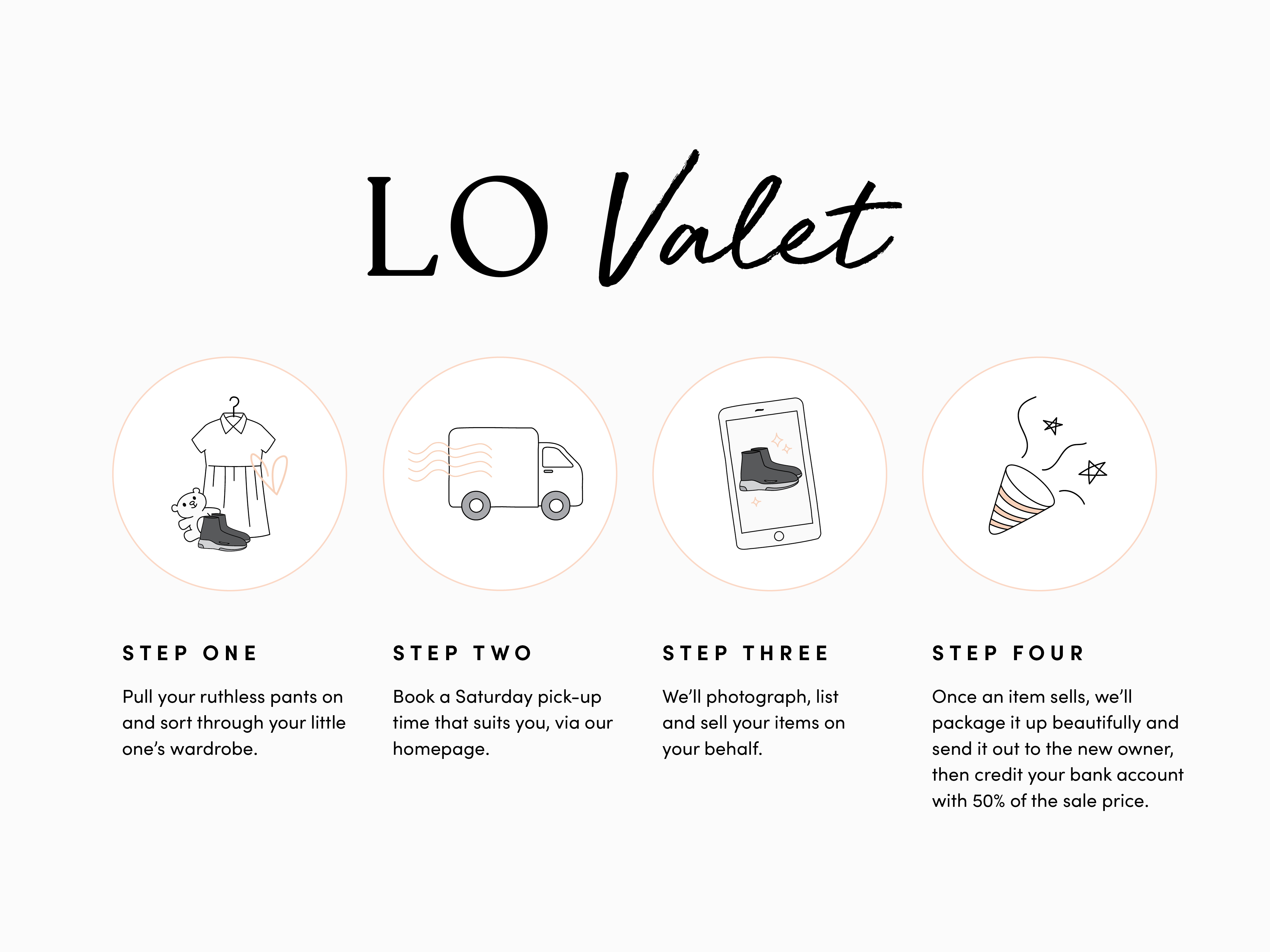A loveable brand personality was key and this was developed through branding and a tone of voice that rides the duality of playful but mature, therefore engaging to the target market. The rounded serif font of the logo has a premium but friendly feel. It was important to make the brand look inclusive and fun in order to break any stereotypes of shopping pre-loved products. The bunny rabbit icon was created as a secondary attribute that's strongly recognisable to Little Outfitters. We chose a bold gender neutral colour to be an identifiable part of the branding so that we could carry it throughout every marketing touch point as a distinct visual cue to the business. We created a comprehensive bank of fun illustrations to bring in an element of playfulness and become a fundamental part of the brand. We proudly built a brand identity that is approachable, charming and rooted in community, reframing the way people feel about buying and selling pre-loved pieces for their children, creating a new social standard for conscious shopping habits and we’re calling for you to join the movement, too.