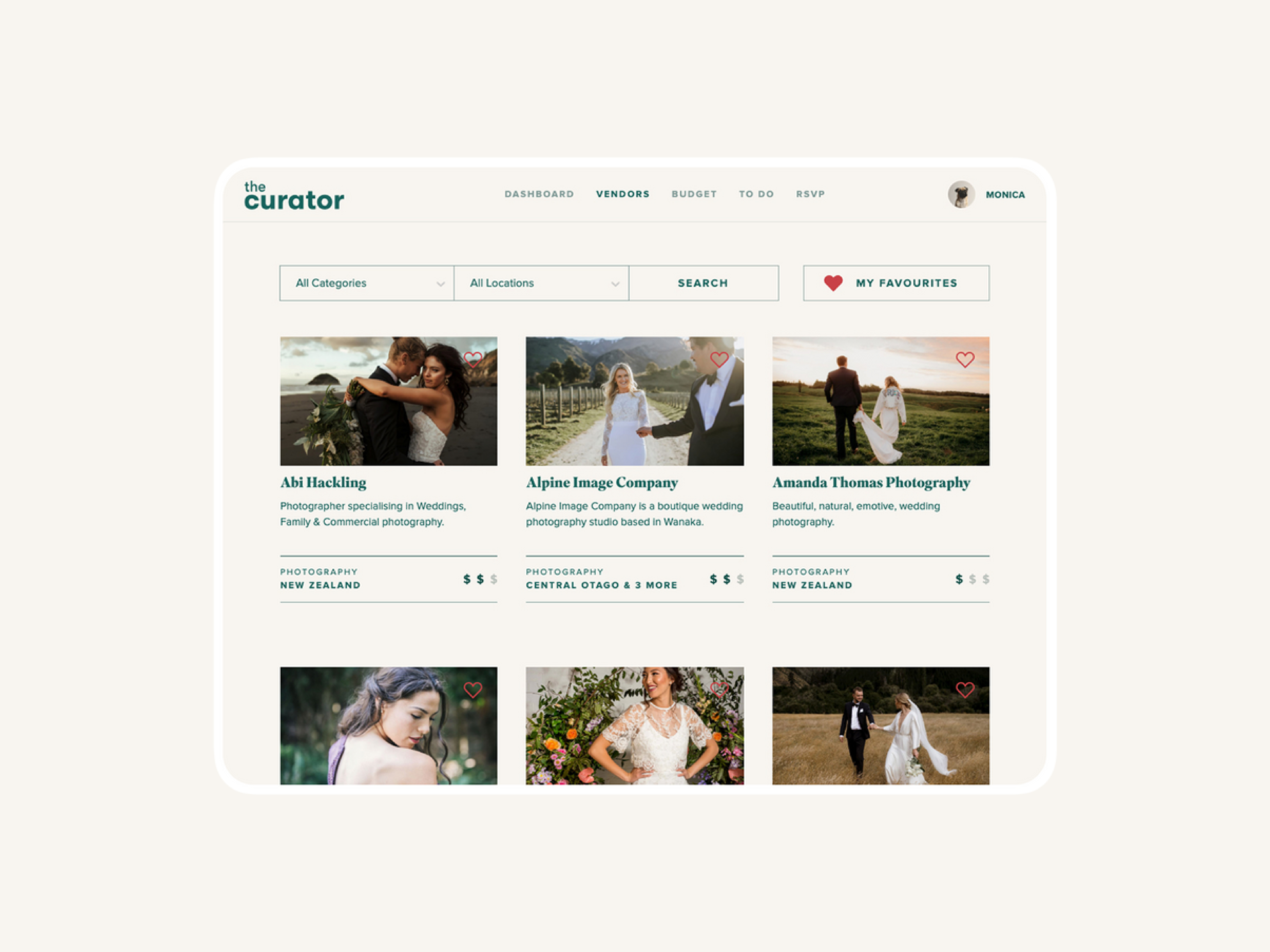 With an innovative approach to wedding planning, The Curator is the byproduct of newly-engaged entrepreneur, Marica Frost. Noticing how dated and overwhelming wedding planning can feel for couples, she spotted a gap in the market for an easy-to-use platform that allows it’s users to plan their special day, track budgets, discover vendors and seek advice all in one place.